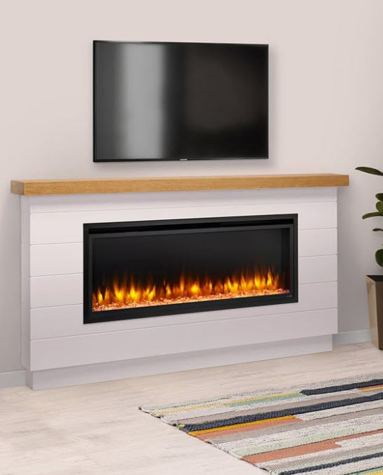 Select from a variety of modern finishes—wall texture, tile, shiplap, stacked stone ledger, or contemporary materials—to elevate your new fireplace.